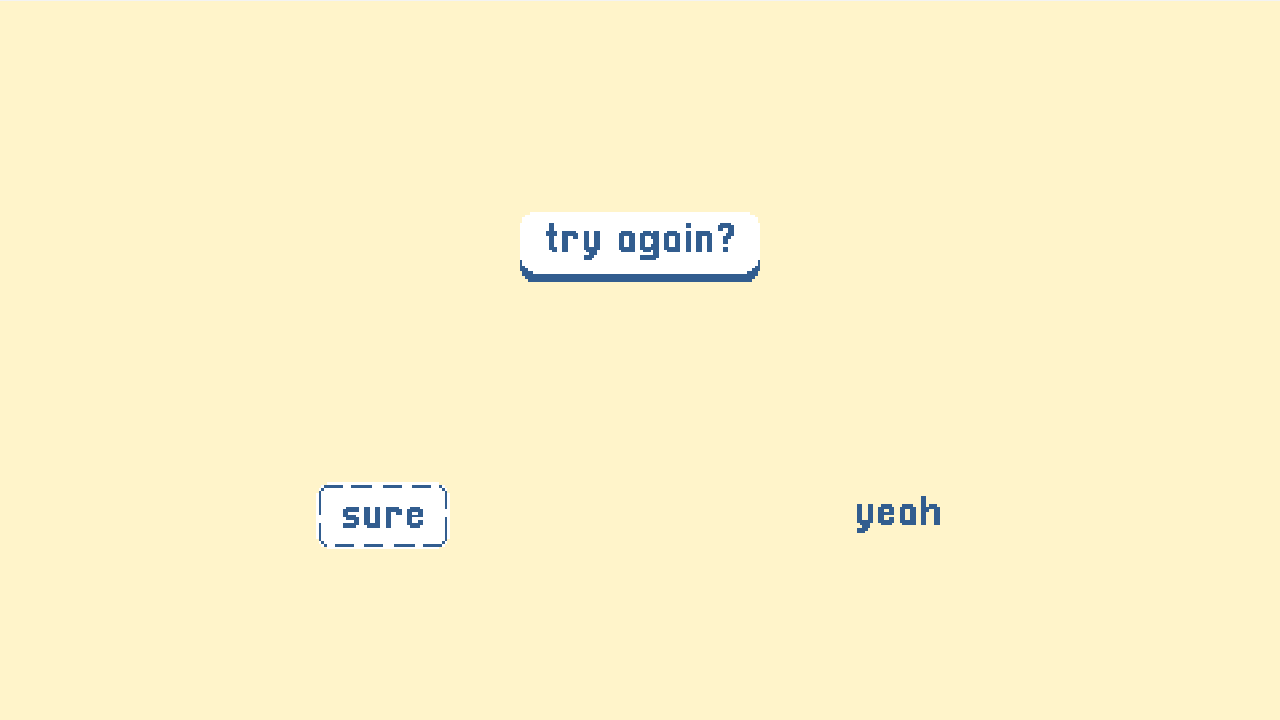 Ooh this one is so unique! The text box sounds and the art style are really cool. I had fun trying it out hahaha, and I’ll keep playing. Great job, everyone! :D